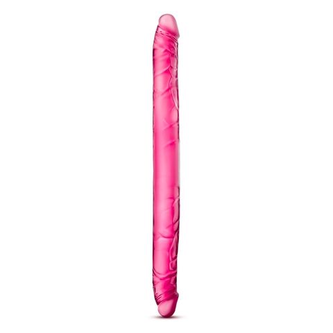 Розовый двусторонний фаллоимитатор B Yours 16 Double Dildo. Имеет реалистичный рельеф. Гибкий ствол.