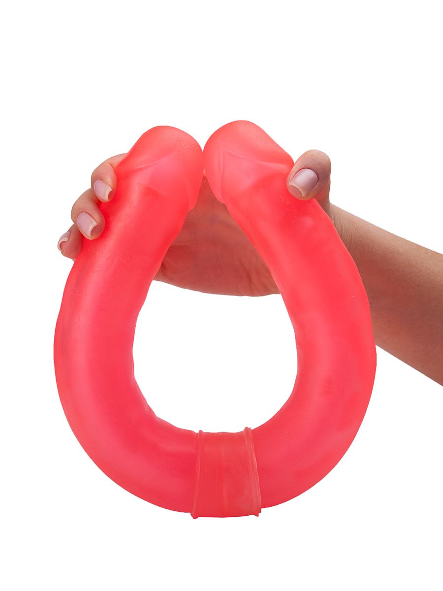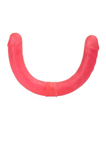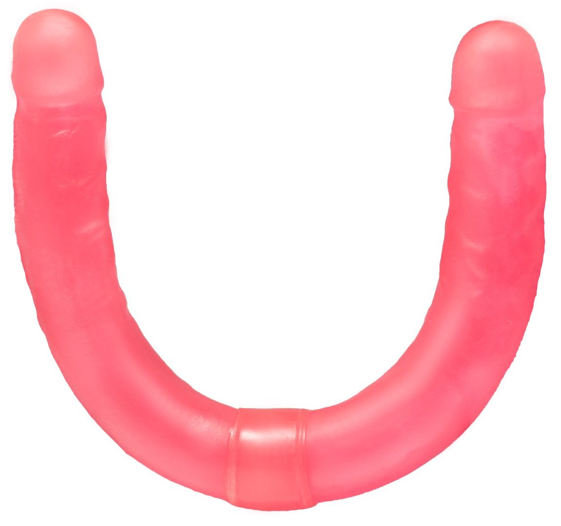 Розовый двусторонний гелевый фаллоимитатор - 44 см.