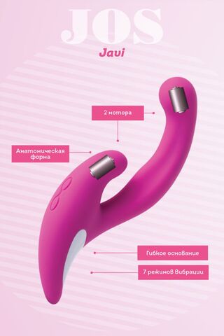 Розовый эргономичный вибратор для двойной стимуляции JOS JAVI - 22 см.