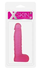 Розовый фаллоимитатор с мошонкой XSKIN 8 PVC DONG. Материал без запаха. Ярко выраженный рельеф.