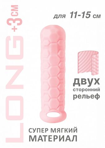 Насадка Long коллекции Homme обеспечивает увеличение размера пениса в длину. Материал насадки - гипоаллергенный, создающий имитацию мягкой и шелковистой «кожи» ТПЕ. Фиксирующее кольцо на мошонку не только удерживает фаллоудлинитель, но и благодаря сдавливанию может усиливать эрекцию. Двухсторонний нереалистичный рельеф насадки позволит одновременно стимулировать сразу обоих партнеров во время полового акта и дополнительно подарит приятные ощущения. Насадка оснащена встроенным удлинителем. Насадка отлично тянется, продлевает время интимной близости и компенсирует анатомическое несоответствие между партнерами. Длина полости - 12,5 см., диаметр - 2,8 см.