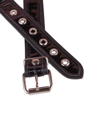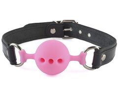 Кляп с оригинальным кожаным ремешком и лаковыми вставками черного цвета. Сам кляп-шар изготовлен из силикона в розовом исполнении, приятного на ощупь, со специальными отверстиями, пропускающими воздух.