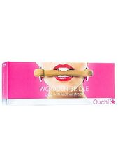 Восхитительный кляп на кожаных ремешках розового цвета. В ремешках имеется 10 отверстий для регулировки длины. Длина трензеля - 15,7 см.