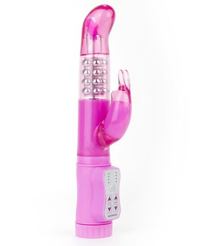 Многоскоростной вибратор с режимами вращения ствола и мощным клиторальным стимулятором в виде зайчика. Имеется возможность менять направление вращения (направо-налево). Мягкий, имеет гладкую поверхность. Внутри ствола расположены металлические шарики. Водонепроницаемый. Имеет 8 режимов вибрации, управление производится при помощи кнопок у основания игрушки. Рабочая длина - 11 см.