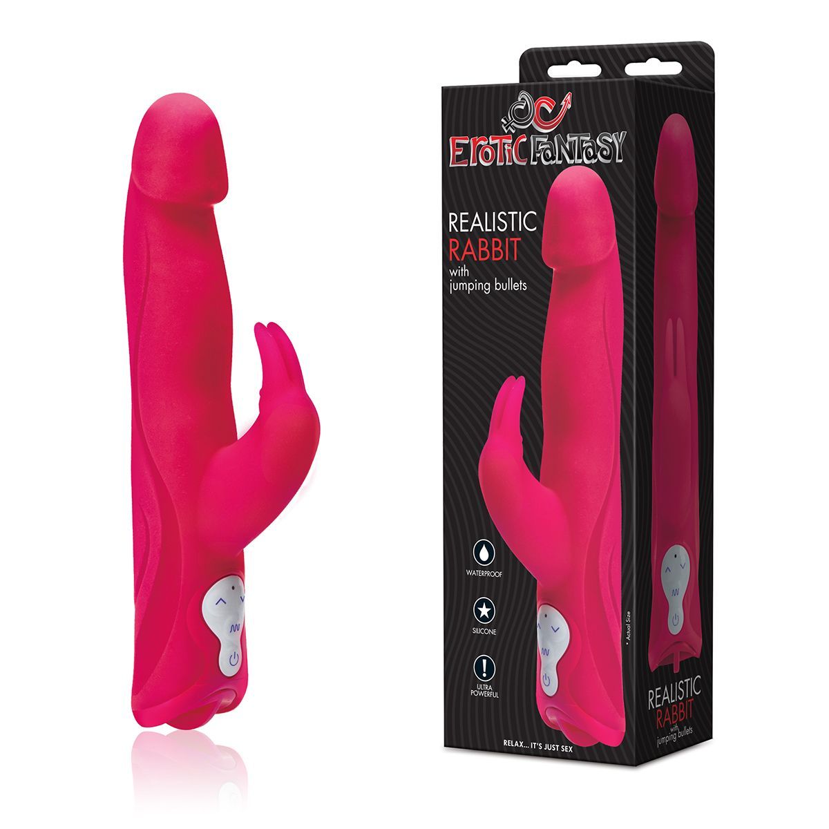 Самый невероятный вибратор с большим набором функций яркого розового цвета. Главное отличие от всех похожих вибраторов, что в игрушке 3 мотора! Имеет 7 режимов, включая прыгающие моторы, когда попеременно включается каждый мотор. Два - в столе вибратора, один - в клиторальном стимуляторе, который выполнен в виде кролика. Игрушка из силикона медицинского качества. Водонепроницаем. Рабочая длина - 13,5 см.
