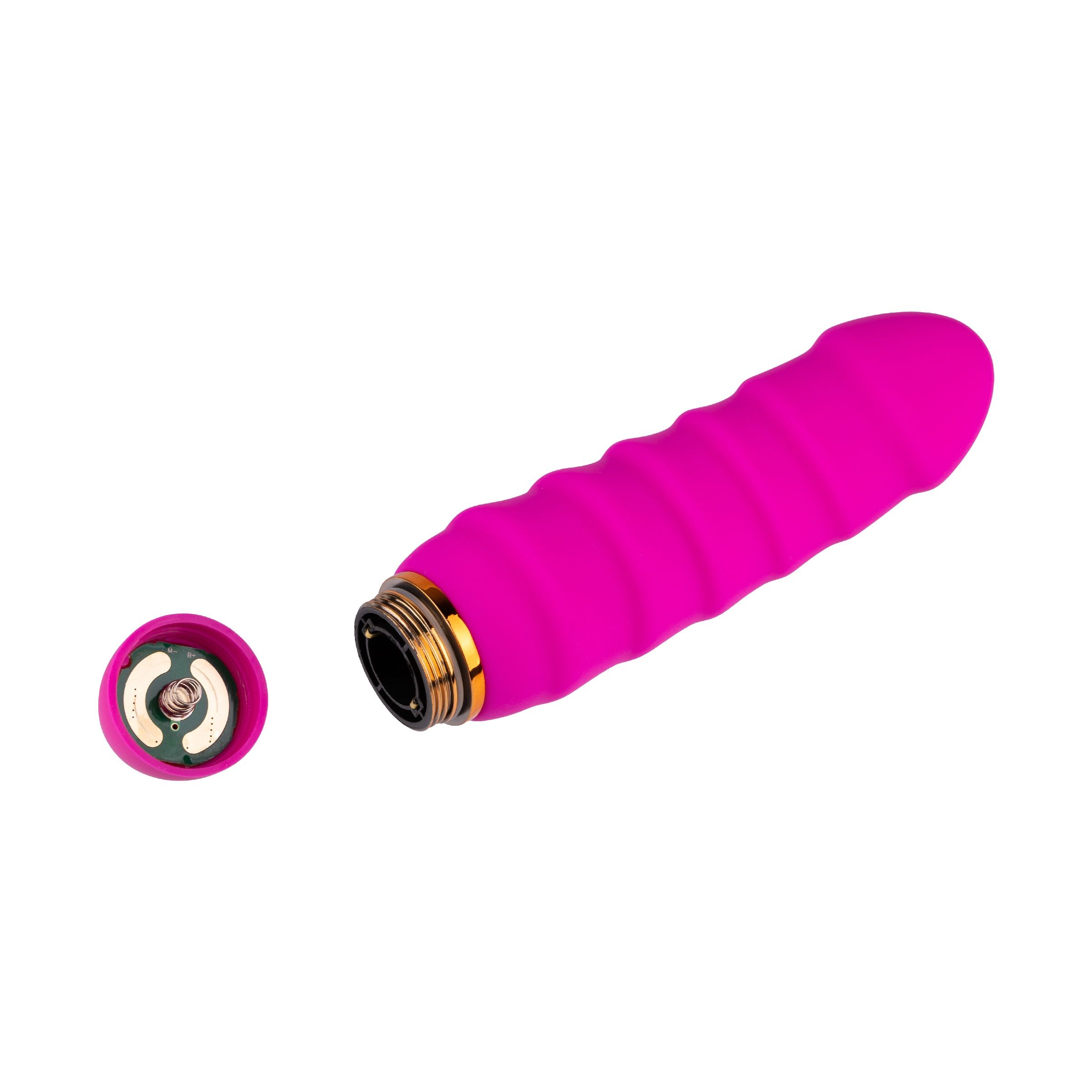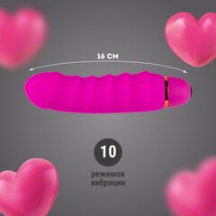 Силиконовый вибратор с рёбрышками. Управление 1 кнопкой. Функции: вибрация и пульсация, регулировка скорости с помощью вращающейся части в основании (всего 10 режимов). Вкл./выкл. с помощью долгого нажатия кнопки (3 сек). Разнообразие режимов вибрации подойдет для любого уровня чувствительности. Изделие выполнено из качественного гипоаллергенного материала, который безопасен в использовании. Нежное покрытие обладает мягким и приятным тактильным эффектом при касании.