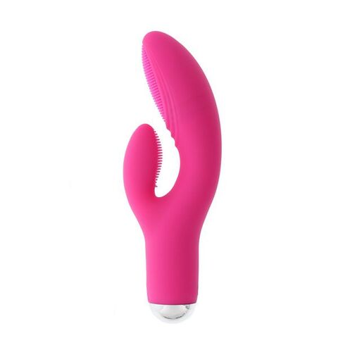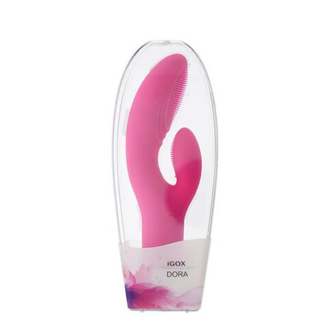 Розовый силиконовый вибромассажёр с клиторальным отростком DORA PINK. Водонепроницаемый, 6 режимов вибрации и ротации. Рабочая длина - 10 см.