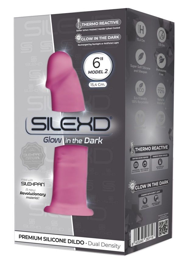 Розовый, светящийся в темноте фаллоимитатор Model 2 - 15,4 см.