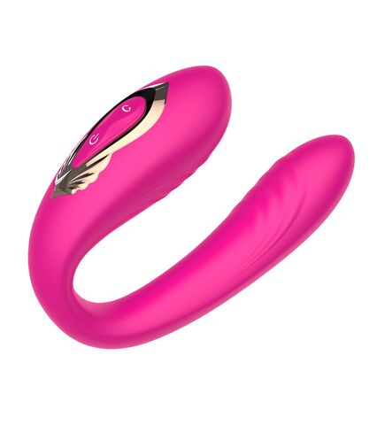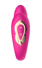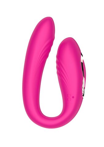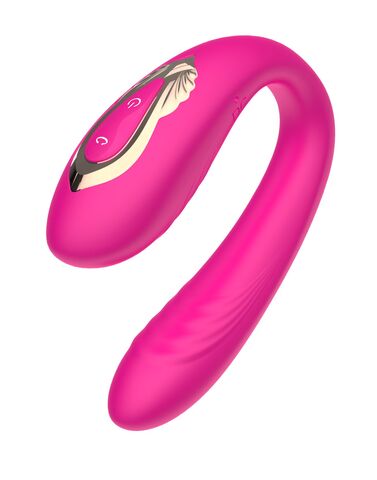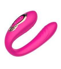 Розовый U-образный вибратор с вращающейся вагинальной частью. Воздействует одновременно на точку G и клитор. Режимы переключаются при помощи пульта ДУ.