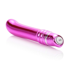 Вибратор с металлическим покрытием розового цвета с ярким и стильным дизайном. Имеет 7 функций вибрации и пульсации переключаются при помощи встроенного пульта управления в основании. Гладкая поверхность.