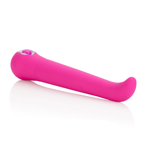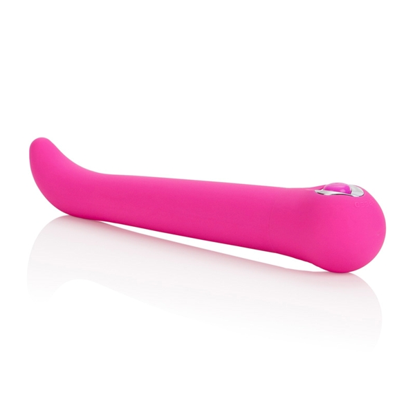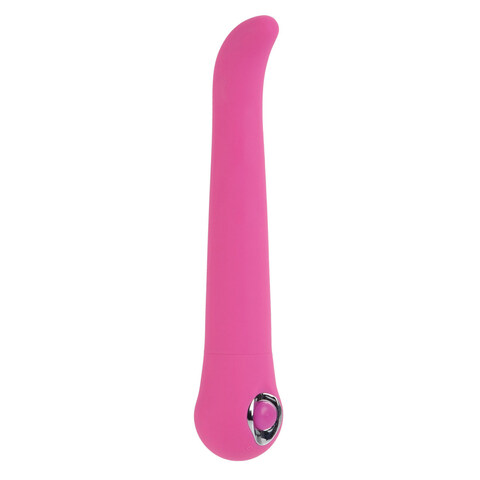 Стимулятор точки G розового цвета. Изготовлен из пластика, имеющего мягкое сатиновое покрытие. Приятный на ощупь. Имеет 3 скорости вибрации и 7 режимов пульсации. Невероятно мощный виброэлемент расположен по всей длине изделия, но особо интенсивная вибрация сконцентрирована в головке для большей стимуляции. Режимы вибрации удобно переключаются при помощи кнопки, расположенной в основании. Водонепроницаемый. Выполнен в стильном дизайне, украшен серебряной вставкой у основания игрушки.