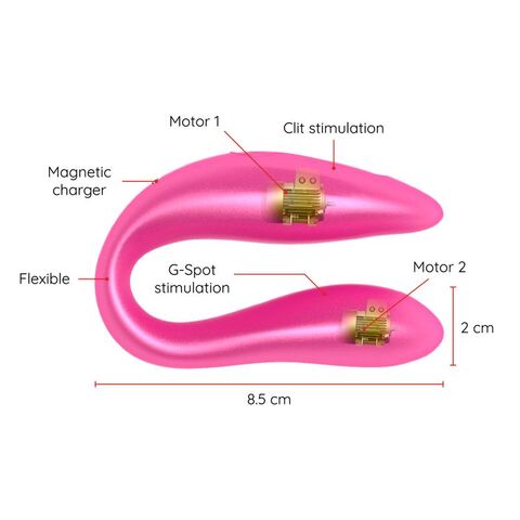 Вибратор для пар оснащён двумя мощными моторами, которые одновременно стимулируют клитор, G-точку и пенис, создавая синхронное и незабываемое ощущение. Эргономичная форма легко подстраивается под анатомию партнёров, обеспечивая максимальный контакт и точную передачу вибраций. 10 режимов вибрации и бесконечное множество комбинаций через приложение позволяют подобрать интенсивность и ритм под любое настроение и фантазию, создавая полностью персонализированный опыт. Благодаря приложению ONINDER вы получаете полный контроль над устройством: управляйте вибрациями на расстоянии, синхронизируйте их с музыкой или позволите партнёру взять управление на себя. Приложение превращает игру в интерактивное приключение, позволяя делиться удовольствием с пользователями по всему миру или исследовать новые сценарии для долгого расстояния. Вибратор полностью водонепроницаем (IPX7), что делает его удобным для использования в ванной или душе и облегчает уход за устройством. Диаметр вагинального отростка - 2 см.