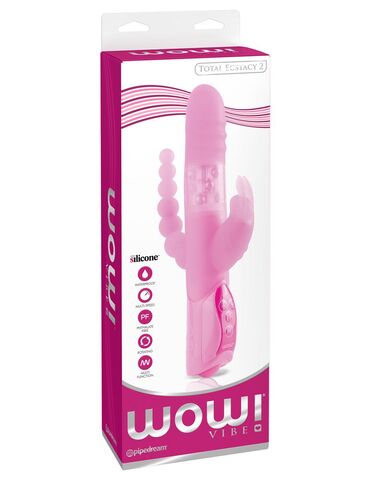 Силиконовый вибратор для тройной стимуляции. Оснащен мощным мотором, с различными уровнями вибрации и ротации. Плавные формы, мягкая гладкая поверхность всего массажера, клиторальный стимулятор и анальный стимулятор в виде цепочки из шариков. Это восхитительный массаж, стимуляция всех эрогенных зон, полнота ощущений для достижения оргазма. Рабочая длина - 13,2 см.