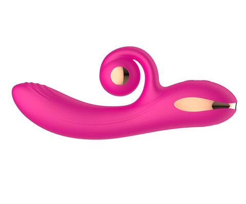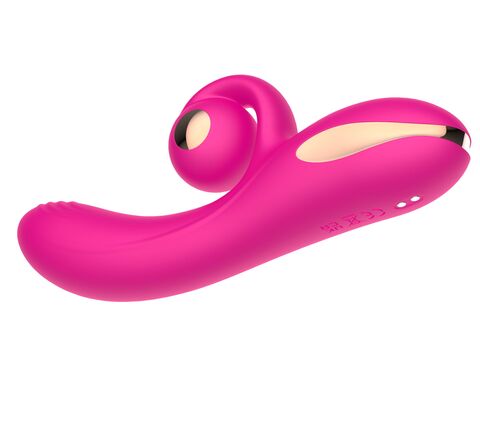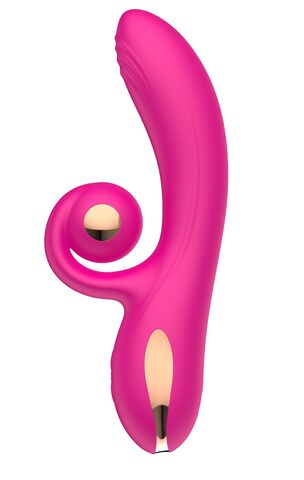Розовый вибратор-кролик с функцией вращения ствола. 10 режимов вибрации, 10 скорсотей ротации.