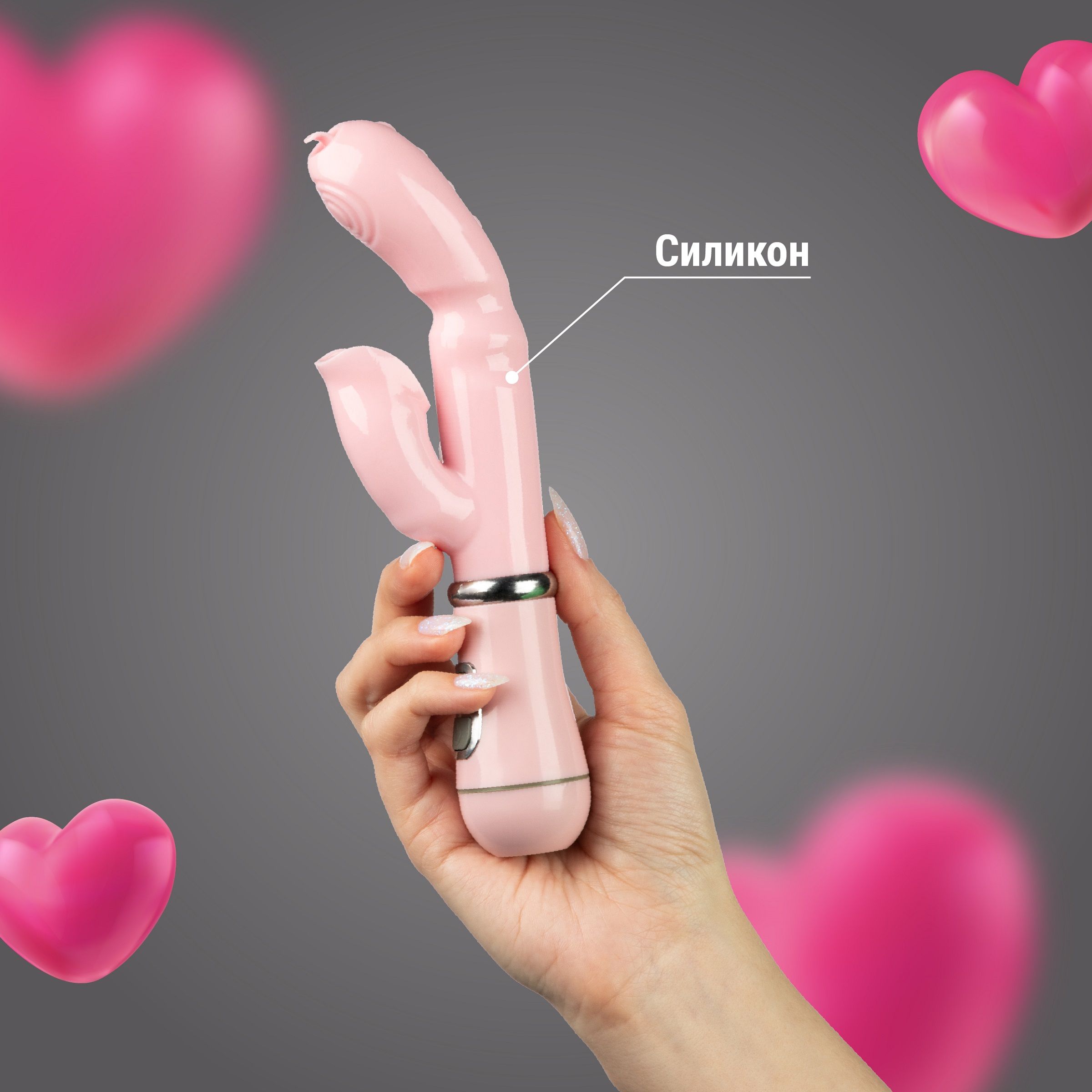 Розовый вибратор-кролик с рельефом. 12 режимов вибрации. Влагоустойчивый, нельзя мыть под водой. Рельефные зоны и разнообразие режимов вибрации подойдут для любого уровня чувствительности. Два вибрирующих отростка позволяют одновременно стимулировать 2 зоны. Изделие выполнено из качественного гипоаллергенного материала, который безопасен в использовании. Нежное покрытие обладает мягким и приятным тактильным эффектом при касании.