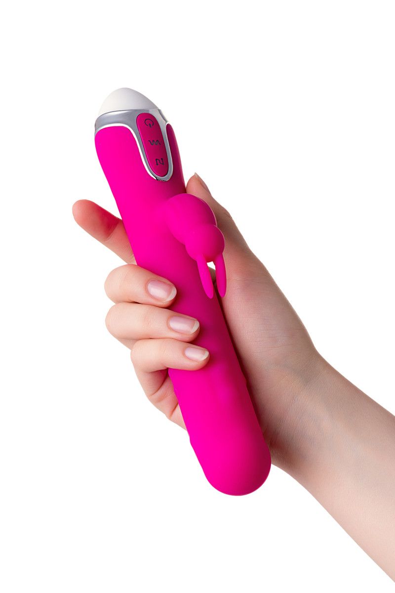 Розовый вибратор с клиторальным стимулятором Balle - 23 см.