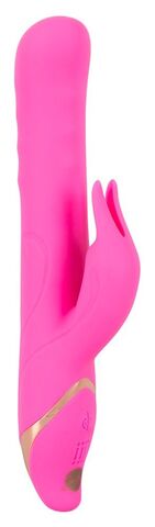 Шелковистый многофункциональный вибратор в розовом цвете с классическим клиторальным стимулятором в форме зайчика. Вместо стандартных вибраций Lovetoys предлагает вращающийся механизм из небольших шариков внутри игрушки, которые ритмично массажируют и стимулируют чувствительные зоны в 7 различных режимах. Стимулятор клитора имеет тихий двигатель, который обеспечивает 7 режимов вибрации, его можно переключать отдельно от движущегося механизма. Удобная панель управления выполнена с подсветкой, вибратор работает от аккумулятора, в комплекте USB-зарядка.