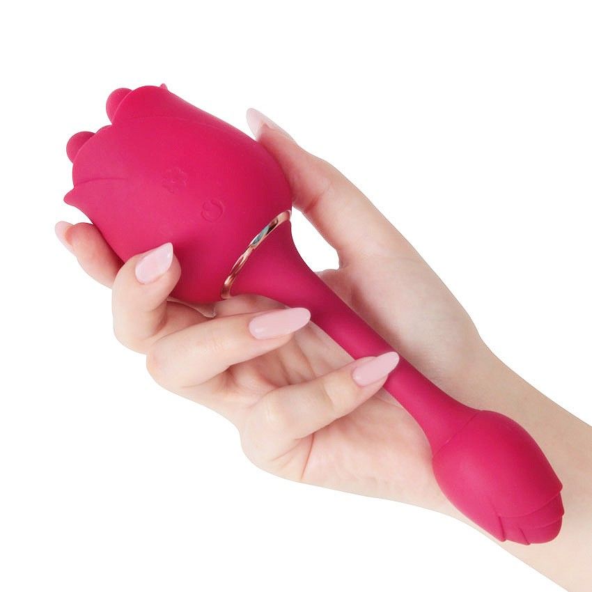 Оригинальный интимный аксессуар для стимуляции влагалища, клитора, сосков и других эрогенных зон. Внутри большого бутона в разных режимах вращаются и вибрируют тычинки. Бутон меньшего размера оснащён разнообразными виброрежимами. Ручка, соединяющая бутоны, гнётся во все стороны. Такая особенность позволяет использовать гаджет в различных вариациях.