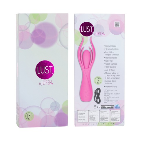 Вибромассажер с двойными лепестками Lust by JOPEN L7 перезаряжаемый из уникальной коллекции Страсть . Нежные прикосновения, интенсивный поэтапный контроль скорости, 10 функциональных режимов вибрации, пульсации и эскалации - ласки под вашим контролем.
