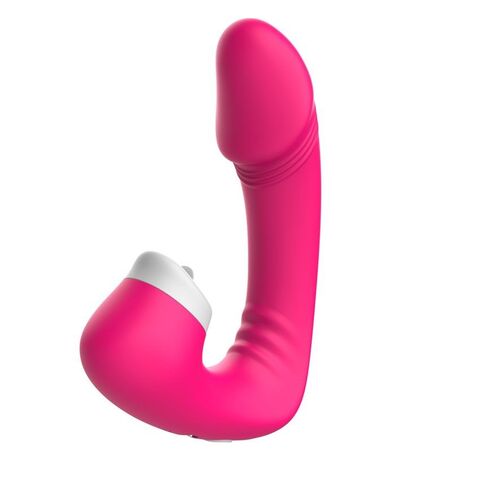Розовый вибромассажёр с клиторальной стимуляцией. 9 режимов вибрации, 3 режима движения язычка. Рабочая длина - 11 см.