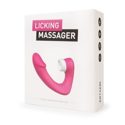 Розовый вибромассажёр с клиторальной стимуляцией. 9 режимов вибрации, 3 режима движения язычка. Рабочая длина - 11 см.