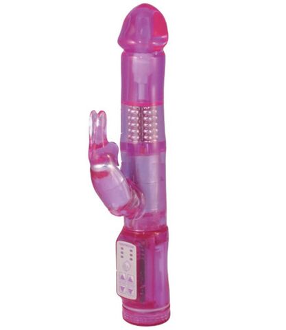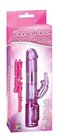 Розовый вибромассажёр с вращающимися шариками и клиторальным зайчиком GOOD VIBES SLIM PURPLE VIBE. Вращение в 2 режимах и 3 скоростях. Рабочая длина - 16 см.
