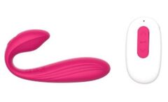 Розовый вибростимулятор для пар с пультом ДУ - 17,7 см.