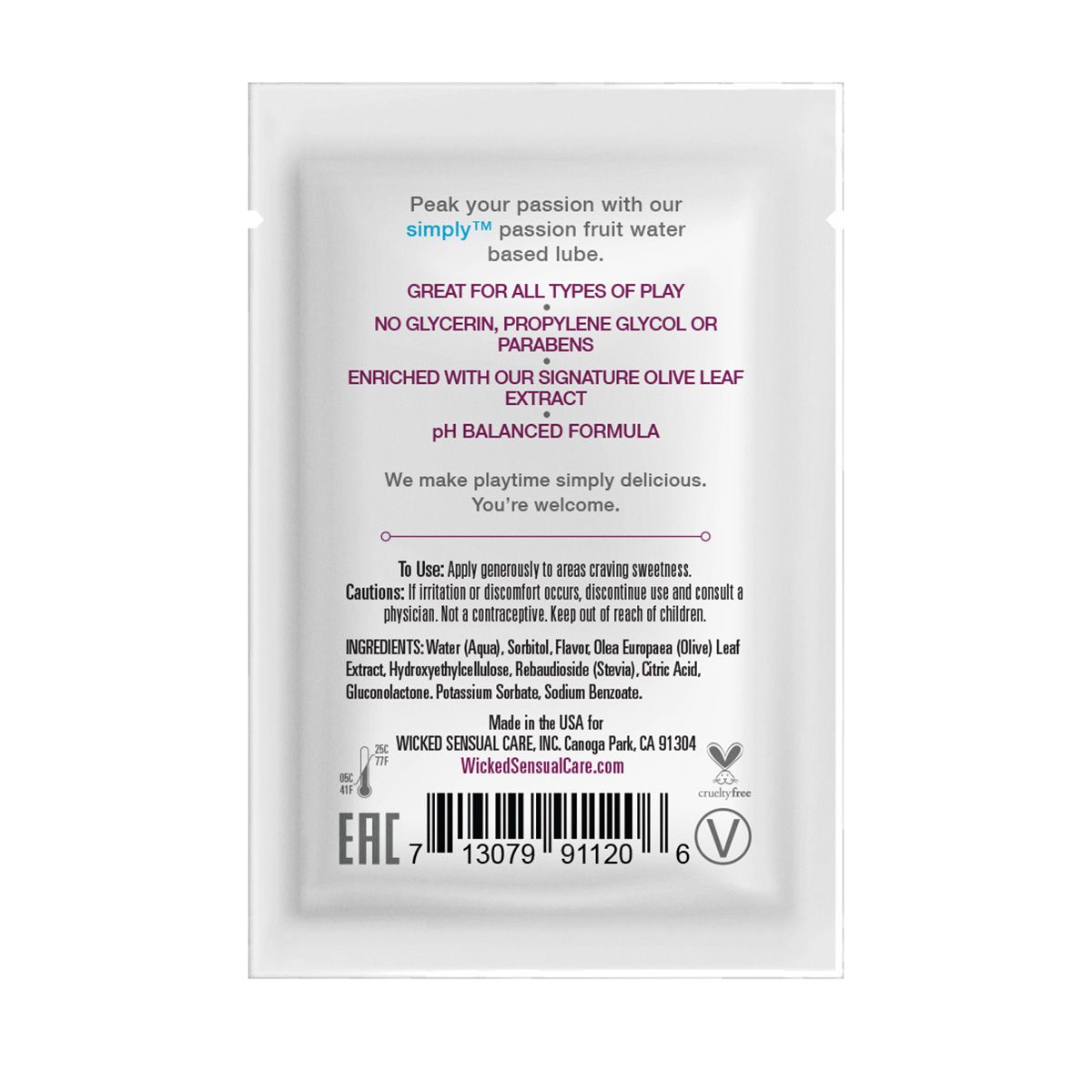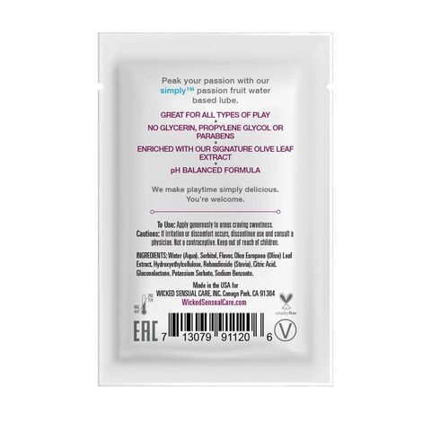 Наслаждайтесь каждой каплей новой восхитительной смазки на водной основе с тропическим вкусом маракуйи. Сделайте время любовной игры просто восхитительным! Отлично подходит для орального секса и вагинального секса, pH-сбалансирована. Ароматизаторы изготовлены из лучших ингредиентов и слегка, для вкуса, подслащены стевией. При производстве Wicked не используется сахар, сладость придает выжимка из растения стевия, благодаря чему лубрикант не оставляет послевкусия, не липнет и дарит удивительное ощущение скольжения. В составе лубриканта есть экстракт оливкового листа, который является природным обеззараживающим средством, мягкая формула подходит даже для чувствительной кожи. Каждый продукт был разработан, чтобы быть удивительно гладким, скользящим, нежным, без ощущения липкости. Сочетаема с латексом, и любыми интимными игрушками. Без парабенов, глицерина и пропиленгликоля в составе.