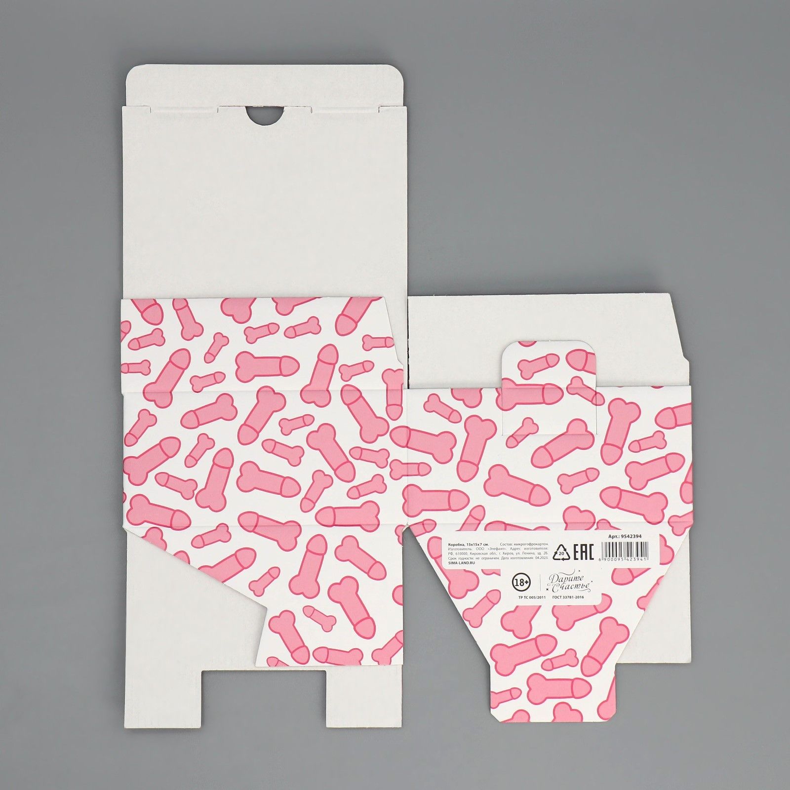 Плотная квадратная картонная коробка с тематическим принтом. Коробка поставляется в разобранном виде. Габариты коробки: 15 х 15 х 7 см.