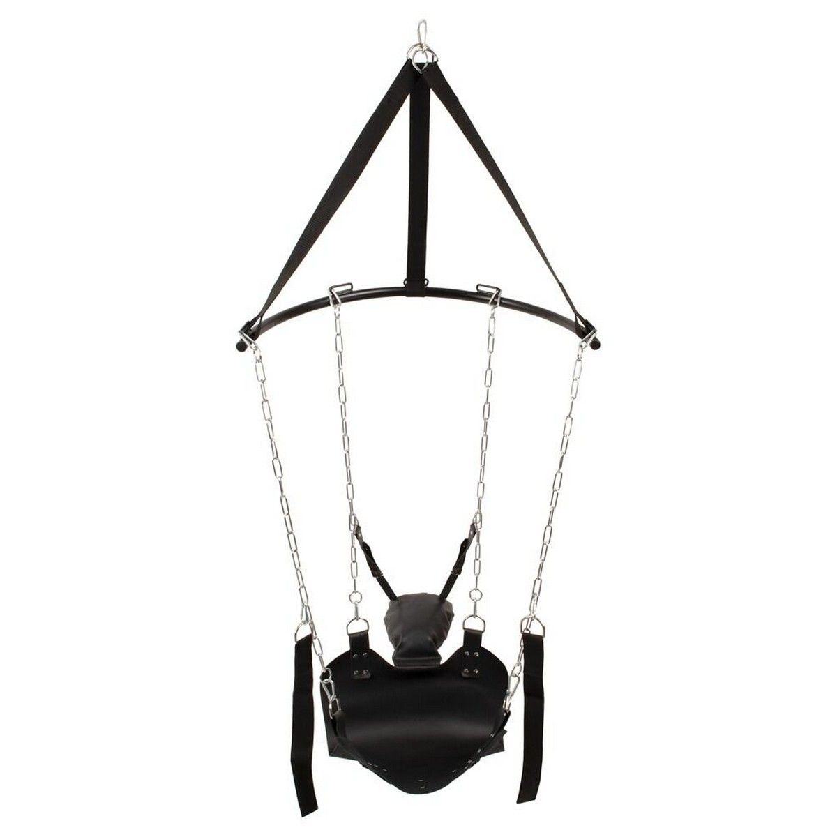 • Прочная конструкция: прочные цепи (каждая длиной 92 см) на полукольце толщиной 2,7 см, прочные ремни (каждый длиной 73 см) для крепления.