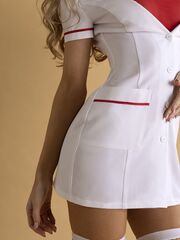 Скорую помощь вызывали? Медсестра уже спешит к вам. Ролевой комплект медсестры, состоящий из полупрозрачного топа и облегающего халатика, это то, что мгновенно возбудит вашего партнёра. Глубокий вырез правильно расставит все акценты. В комплекте: халат, топ, чулки.