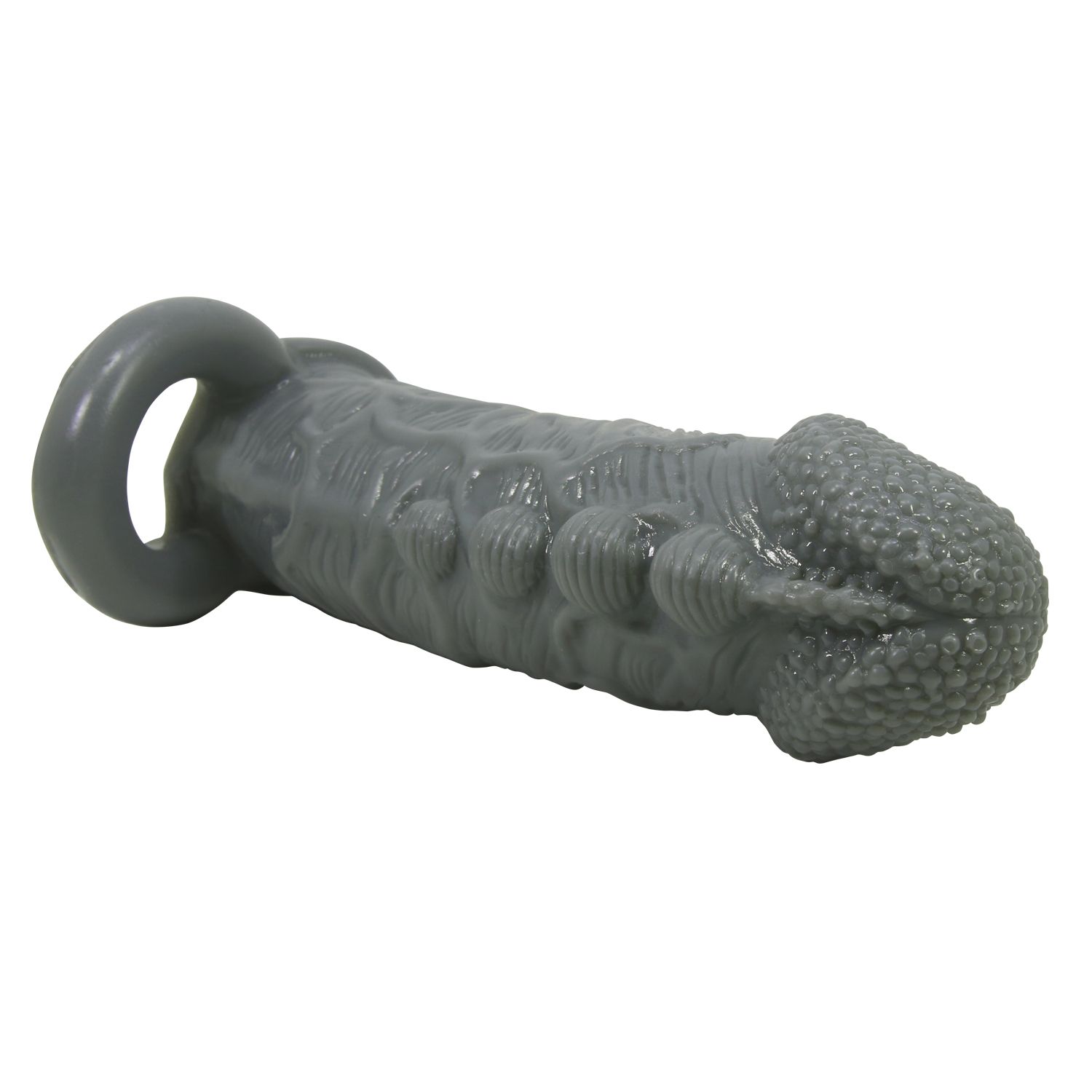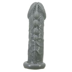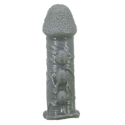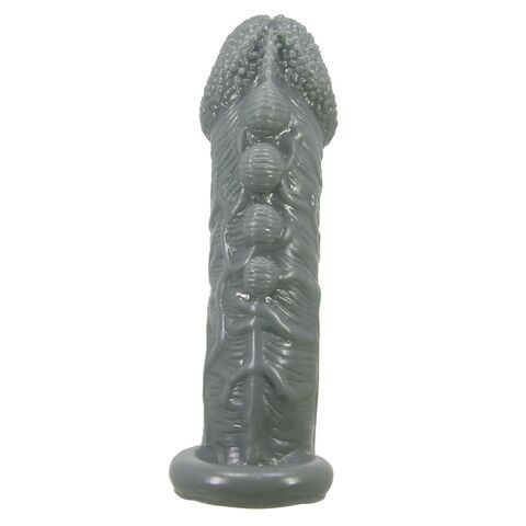 Серая насадка Jaylen с подхватом мошонки и наростами - 14 см.
