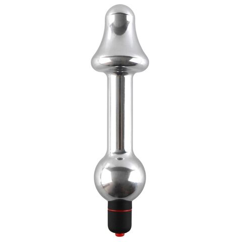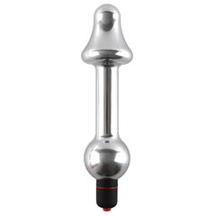 Серебристая анальная пробка AH T1 с вибрацией - 11,5 см.