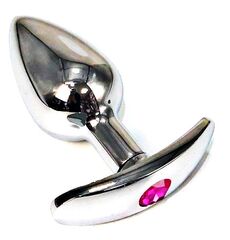 Серебристая анальная пробка для ношения с розовым кристаллом - 6 см.