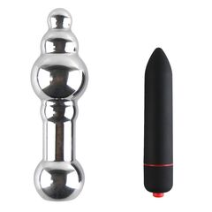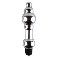 Серебристая анальная пробка IN T2 с вибрацией. Съемный виброэлемент. 7 режимов вибрации.