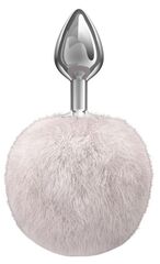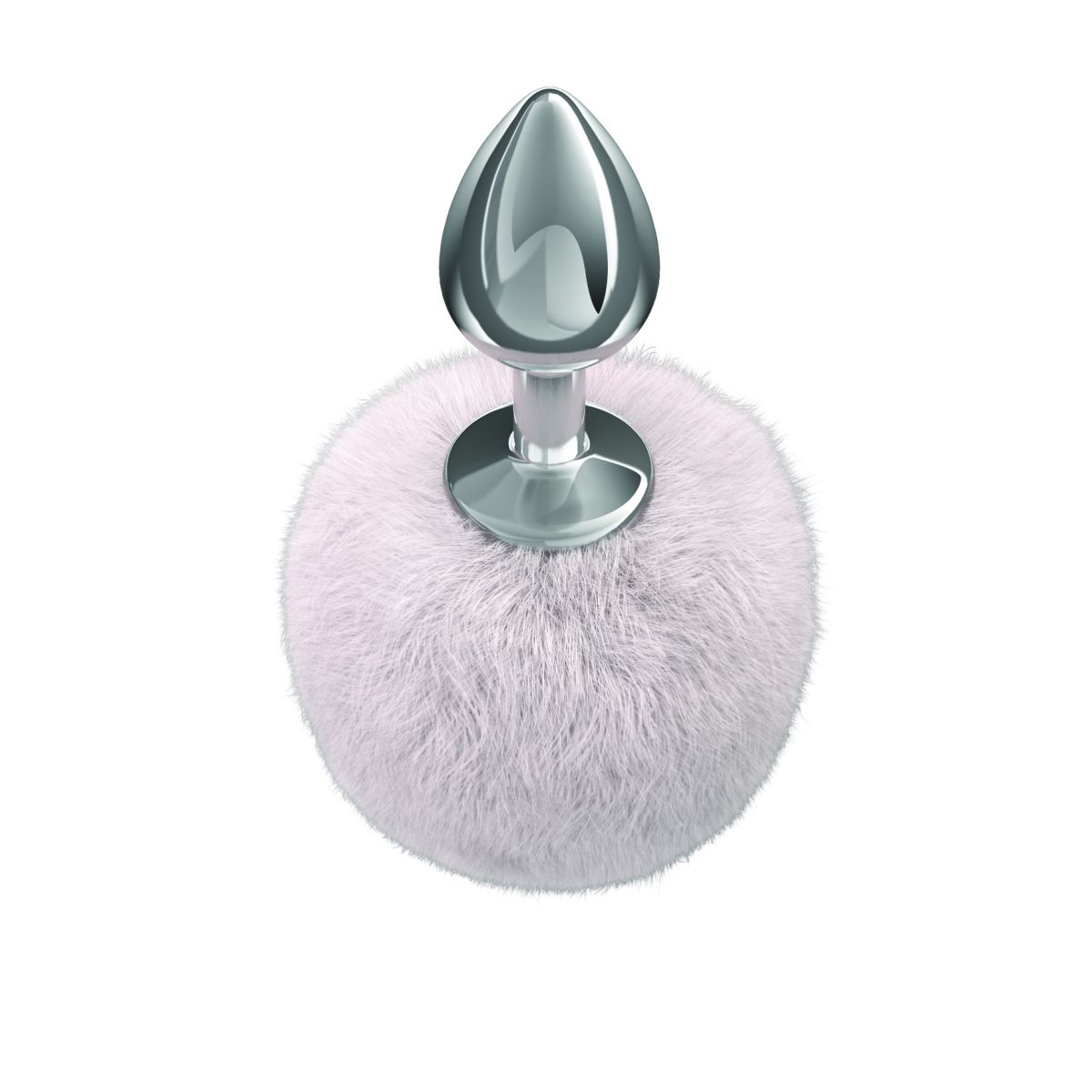 Серебристая анальная пробка с белым пушистым хвостиком Twinkle