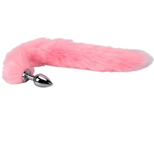 Серебристая анальная пробка с длинным нежно-розовым хвостом