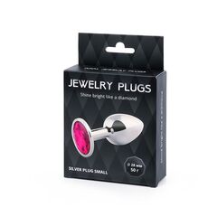 Серебристая анальная пробка с малиновым кристаллом - 7,2 см.