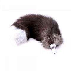 Серебристая анальная пробка с натуральным лисьим хвостиком