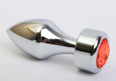 Серебристая анальная пробка с широким основанием и красным кристаллом - 7,8 см.