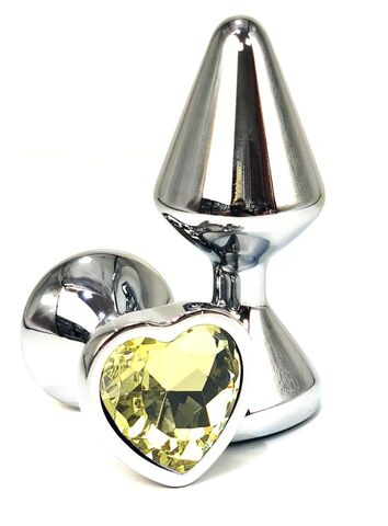 Серебристая анальная пробка с желтым кристаллом-сердцем - 8 см.
