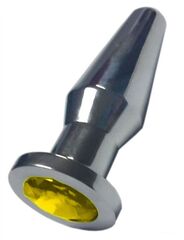 Серебристая анальная пробка с жёлтым кристаллом - 10,3 см.