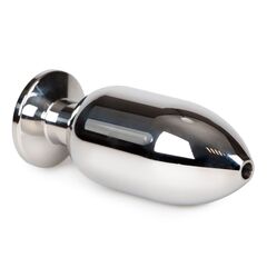 Анальная пробка из нержавеющей стали, полая внутри. Имеет гладкую поверхность. Устойчивое ограничительное основание для безопасного использования. Металл быстро принимает необходимую температуру - его можно или охладить или нагреть - на Ваш выбор. Рабочая длина - 9,5 см.