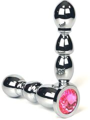 Серебристая анальная пробка-ёлочка с розовым кристаллом - 12,5 см.