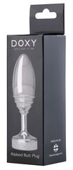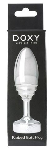 Серебристая анальная втулка Doxy Ribbed Butt Plug - 10,5 см.