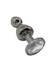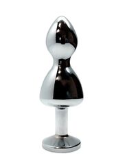 Серебристая анальная втулка Wooomy Lollypop M с прозрачным кристаллом - 9,4 см.