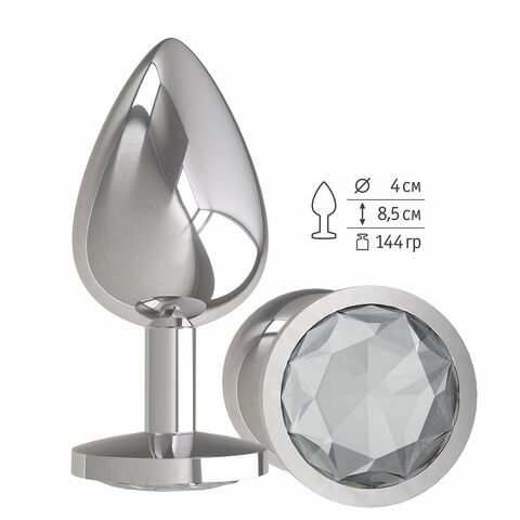 Гладенькая металлическая пробка с кристаллом в ограничительном основании. Рабочая длина - 8,5 см.