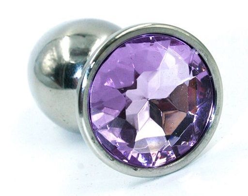 Серебристая малая анальная пробка с сиреневым кристаллом - 7 см.