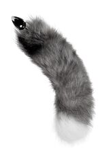 Серебристая металлическая анальная втулка с серым лисьим хвостом