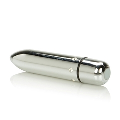 Вибропуля серебристого цвета, изготовленная из пластика. Украшена стразами. Кнопка управления вибрацией находится у основания пули. Батарейка входит в комплект.